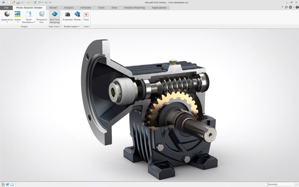PTC Creo Render Studio Extension is powerful rendering software for creating photorealistic renderings that help you sell your 3D product concepts even more effectively. In addition to generating detailed photorealistic renderings of 3D CAD models, the software also offers extensive image editing tools and special effects. For example, you can change lighting, add dramatic backgrounds, and apply special effects like textures, reflections, shadows, and depth of field. The images you produce with the Creo Render Studio Extension help streamline design meetings and the creation of bids, documentation, and marketing materials, eliminating the need for many expensive prototypes.